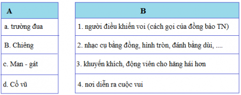 4. Chọn lời giải nghĩa ở cột B phù hợp với mỗi từ ngữ ở cột A