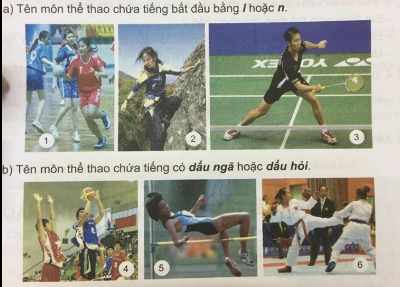 1. Viết đúng từ ngữ chỉ tên môn thể thao trong mỗi ảnh vào vở: