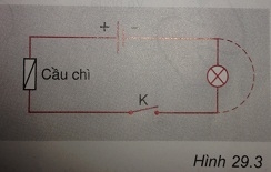 Quan sát sơ đồ mạch điện hình 29.3 và cho biết có hiện tượng gì xảy ra với cầu chì khi đoản mạch.