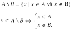 Tập hợp C gồm các phần tử thuộc A nhưng không thuộc B gọi là hiệu của A và B. Kí hiệu