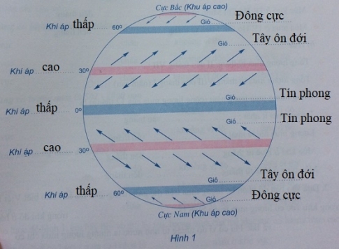 Điền tiếp tên các khí áp (cao hặc thấp) và các loại gió vào chỗ chấm (...) ở hình 1.
