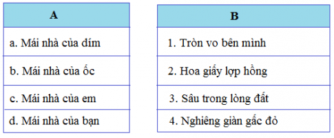 - Chọn từ ngữ ở cột A thích hợp với mỗi từ ngữ ở cột B để tạo thành ý tả nét đáng yêu của mỗi mái nhà riêng