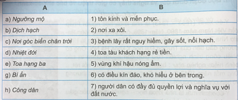 3. Chọn lời giải nghĩa ở cột B phù hợp với mỗi từ ngữ ở cột A
