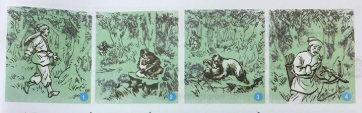 2. Dựa vào câu chuyện Người đi săn và con vượn, tìm câu văn phù hợp với mỗi tranh dưới đây