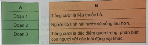 (1) Nội dung chính của mỗi đoạn văn trong bài là gì? Nối từng ô ở cột A với ô thích hợp ở cột B để trả lời