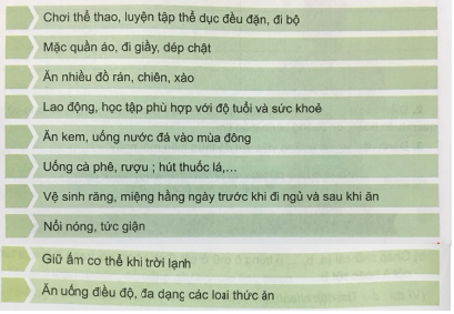 Hãy viết chữ N vào việc nên làm, chữ K vào việc không nên làm?
