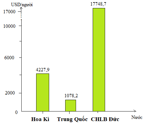Dựa vào bảng số liệu sau về giá trị xuất khẩu và dân số năm 2008 của Hoa Kì, Trung Quốc và Cộng hòa Liên Bang Đức.