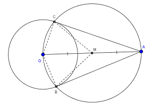 - Kẻ các đường thẳng AB và AC , ta được các tiếp tuyến của đường tròn.