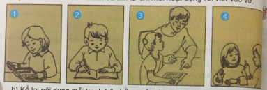 Kể lại nội dung mỗi tranh trên bằng một câu