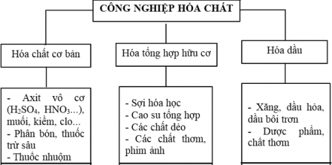 Dựa vào SGK, em hãy điền vào chỗ trống và sơ đò những nội dung phù hợp về ngành công nghiệp hóa chất.
