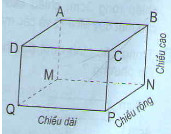 Hình hộp chữ nhật có ba kích thước: chiều dài, chiều rộng, chiều cao.