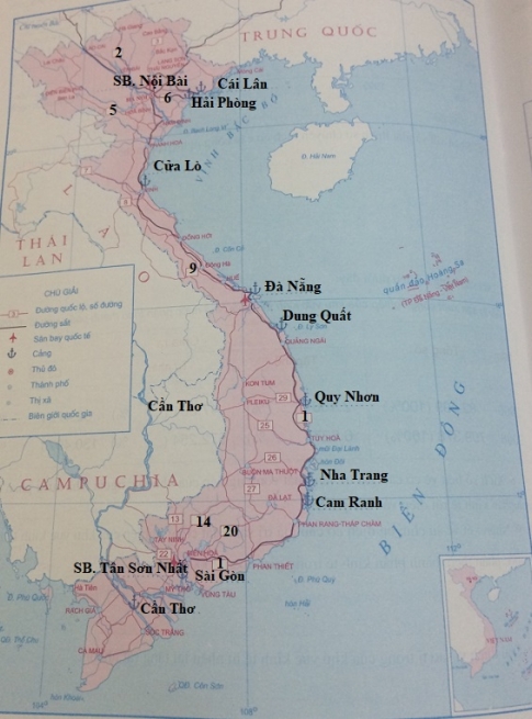 - Sân bay quốc tế: Tân Sơn Nhất, Nội Bài, Đà Nắng.