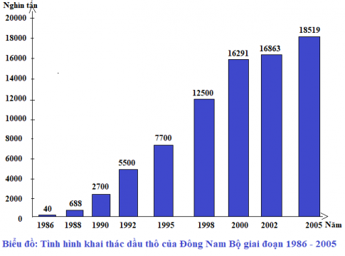 Trong giai đoạn 1986 - 2005, sản lượng khai thác dầu thô của nước ta liên tục tăng qua các năm.