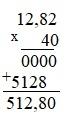 a) 7,69 x 50; b) 12,6 x 800; c) 12,82 x 40; d) 82,14 x 600