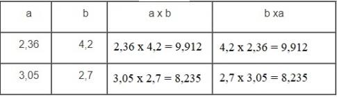 Tính rồi so sánh giá trị của a x b và của b x a: