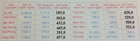 Đồng bằng sông Hồng là vựa lúa lớn thứ hai của Việt Nam mà bình quân lúa theo đầu người của vùng lại thấp hơn nhiều so với mức trung của cả nước vì: