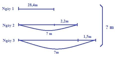 Một người thợ dệt ngày thứ nhất dệt được 28,4 m vải, ngày thứ hai dệt được nhiều hơn ngày thứ nhất 2,2m vải, ngày thứ ba dệt được nhiều hơn ngày thứ hai 1,5m vải. Hỏi cả ba ngày người đó dệt được bao nhiêu mét vải?