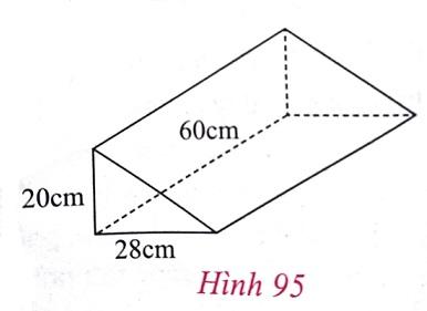 Một lăng kính có dạng hình lăng trụ đứng với đáy là tam giác vuông như hình 95. Tính thể tích của lăng kính.