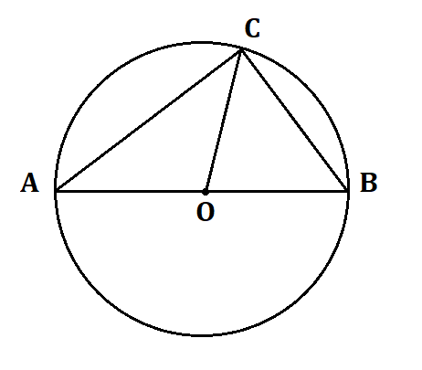 Tam giác ABC có trung tuyến CO bằng nửa cạnh AB (do CO = AO = BO) nên tam giác ABC vuông tại C.