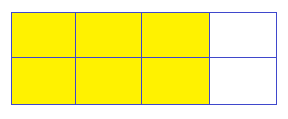 Các em thực hiện các bước như sách giáo khoa đã hướng dẫn thì ta được hình chữ nhật có 6 ô đã tô màu như sau: