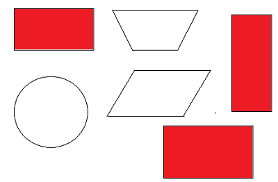 Lấy từ góc học tập phiếu có các hình giống hình vẽ sau. Hãy tô màu đỏ vào hình chữ nhật.