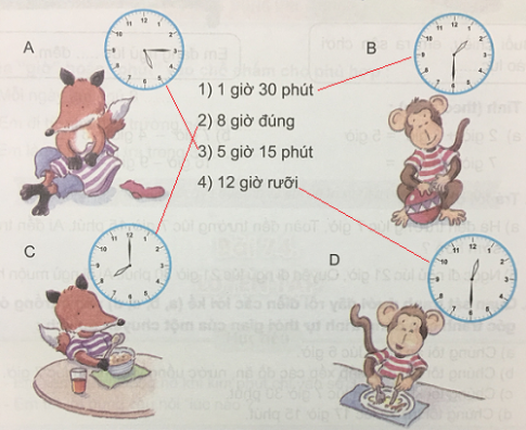 Mỗi đồng hồ chỉ thời gian nào đã cho dưới đây: