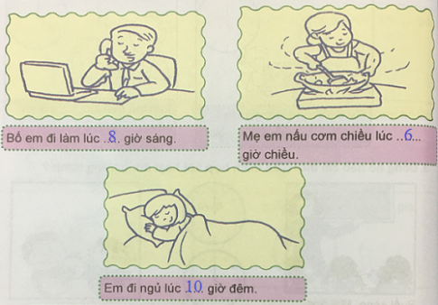 Điền vào chỗ chấm để thể hiện thời gian đúng với nếp sinh hoạt hằng ngày ở gia đình em?