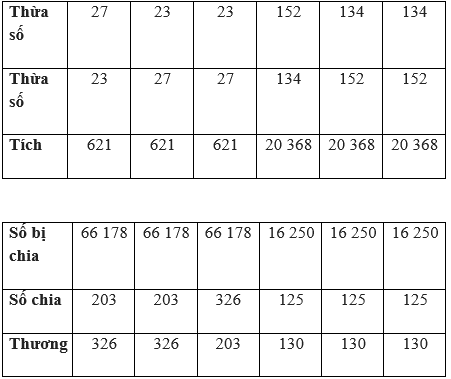Trong phép nhân: để tìm tích ta lấy thừa số nhân với thừa số, để tìm số chưa biết ta lấy tích chia cho thừa số đã biết.