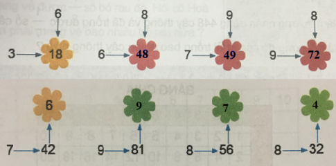 Dùng bảng nhân, bảng chia để tìm số thích hợp ở bông hoa (theo mẫu):