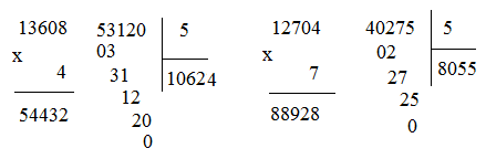 13608 x 4 53120 : 6 12704 x 7 40275 : 5