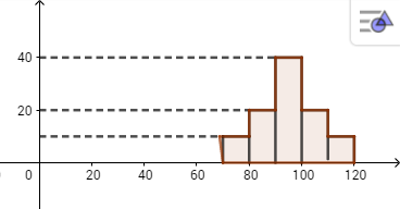Biểu đồ tần suất hình cột và đường gấp khúc tần suất như sau:
