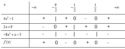 với \(x \in \left( -\infty ;{-{9 \over 2}} \right) \cup \left( -\frac{1}{2}; \frac{1}{2} \right)\)