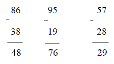 a. 86 - 38; b. 95 - 19; c. 57 - 28
