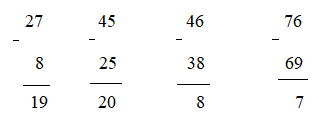 a. 27 - 8 b. 93 - 25 c. 46 - 38 d. 76 - 69