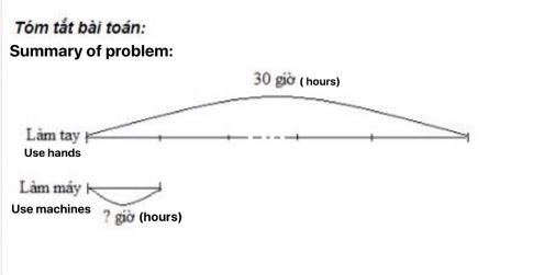 Một công việc làm bằng tay hết 30 giờ, nếu làm bằng máy thì thời gian giảm 5 lần. Hỏi công việc đó làm bằng máy hết mấy giờ ?