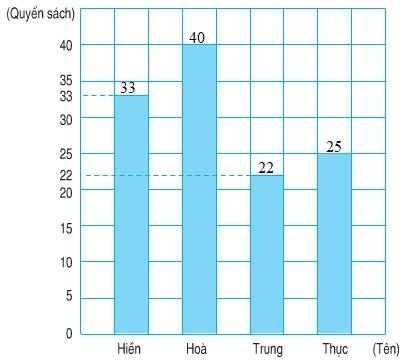 Biểu đồ dưới đây chỉ số quyển sách các bạn Hiền, Hòa, Trung, Thực đã đọc trong một năm: