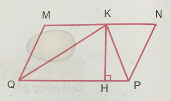 Cho hình bình hàng MNPQ (xem hình vẽ) có MN= 18cm, chiều cao KH=9cm. So sánh diện tích hình tam giác KQP với tổng diện tích của tam giác MKQ và hình tam giác KNP?