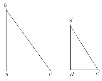 A'B'C' vuông tại A'. Nếu ta có $\frac{AB}{A'B'}$ = $\frac{AC}{A'C'}$ thì hai tam giác trên có đồng dạng với nhau không? Chứng minh.