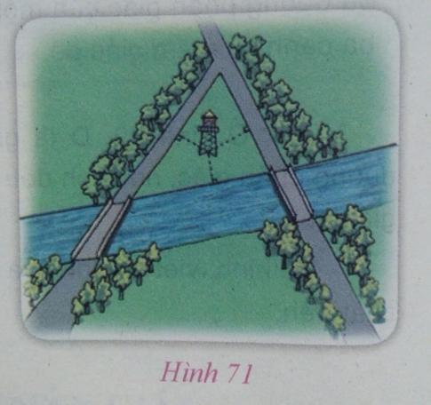 Có hai con đường cắt nhau và cùng cắt một con sông tại 2 điểm khác nhau (h.71).