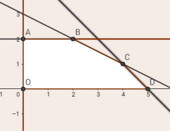 có giá trị 15 tại đỉnh \(D(5;0)\)