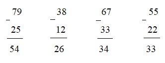 a. Số bị trừ là 79, số trừ là 25