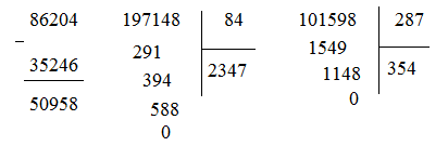 a. 86204 - 35246; 197148 : 84; 101598 : 287