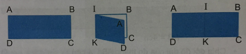 Gấp tờ giấy hình chữ nhật ABCD (theo hình vẽ) rồi đánh dấu trung điểm I của đoạn thẳng AB và trung điểm K của đoạn thẳng DC.