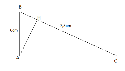 = CH.BC $\Rightarrow $ CH = $\frac{AC^{2}}{BC}$ = 2,7cm