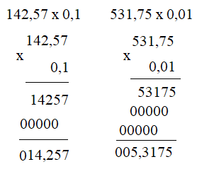 579,8 x 0,1= 57,98 67,19 x 0,01= 0,6719 5,6 x 0,001= 0,0056