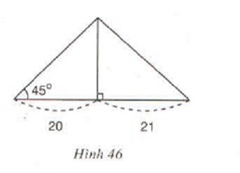 . Đường cao chia một cạnh kề với góc đó thành các phần 20cm và 21cm. Tính cạnh lớn trong hai cạnh còn lại ( lưu ý có hai trường hợp hình 46 và hình 47).