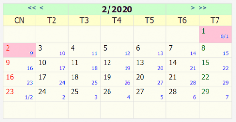 c. Ngày 14 tháng 2 là ngày thứ 6.