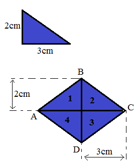 Vậy diện tích hình thoi đã ghép là: ![]()
