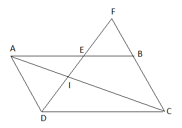 ICF có $\widehat{IAD}$ = $\widehat{ICD}$; $\widehat{IDA}$ = $\widehat{IFC}$ (so le trong) nên