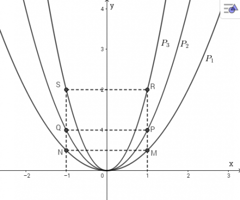 đi qua gốc tọa độ O và hai điểm P; Q vừa xác định, ta được đồ thị hàm số $y=x^{2}$